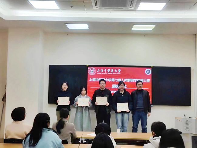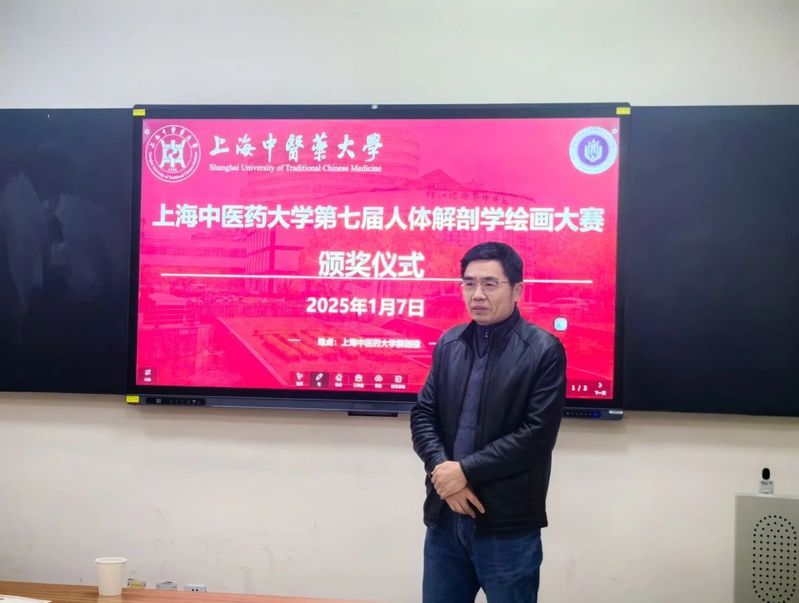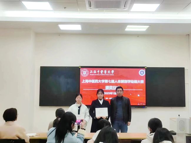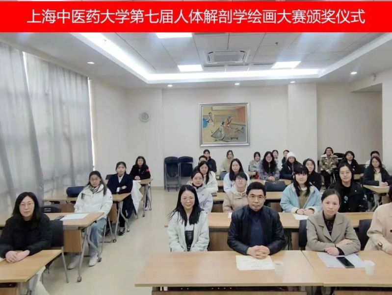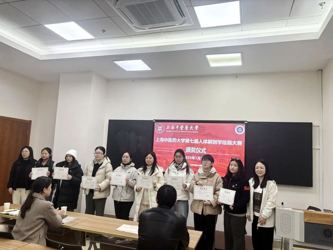2025年1月7日,上海中医药大学第七届人体解剖学绘画大赛颁奖仪式在解剖楼举行,人体解剖学教研室主任、“和学生在一起”导师团团长邵水金教授,中医诊断学教研室教授燕海霞老师,病理学教研室副教授郭炜老师,人体解剖学教研室副教授牟芳芳老师,辅导员王双双老师,获奖同学以及导师团的同学参加了本次颁奖仪式。
