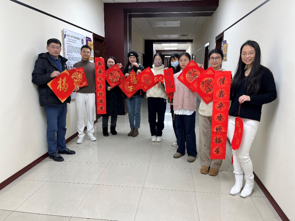 学院党委副书记、副院长国海东老师,兼职辅导员丁涵青老师在活动现场与留校学生们同堂挥毫,同书百“福”。丁涵青老师关心留校学生春节期间生活安排及出行计划,叮嘱同学们提高宿舍安全意识,尤其注重新春防火防盗。国海东老师殷殷教导同学们假期合理安排好作息,规划好科研、学习与生活,并对同学们提出了新年的希冀与要求,同时代表学院向留校同学送出新春暖心大礼包。