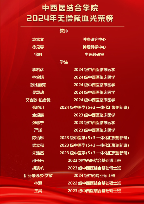 献血传大爱,医者显担当!在刚刚结束的上海中医药大学无偿献血活动中,01直播足球 师生积极响应。本次献血活动共有26人参与,其中20名师生成功献血,用实际行动彰显责任与担当。