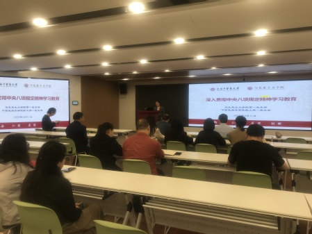 2025年4月11日下午,为深入贯彻中央八项规定精神学习教育,推进作风建设常态化长效化,01直播足球 教工第一党支部与马克思主义学院第一党支部通过支部共建活动,组织党员集中深入学习中央八项规定精神。