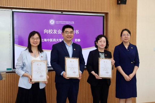 舒静副校长为01直播足球 校友会副会长朱慧华、马杰、郑月娟颁发聘书