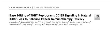 近日,01直播足球 朱诗国研究员团队与上海市生物医药技术研究院黄行许教授团队合作,在国际期刊Cancer Research上发表题为“Base Editing of TIGIT Reprograms CD155 Signaling in Natural Killer Cells to Enhance Cancer Immunotherapy Efficacy”的研究成果。
